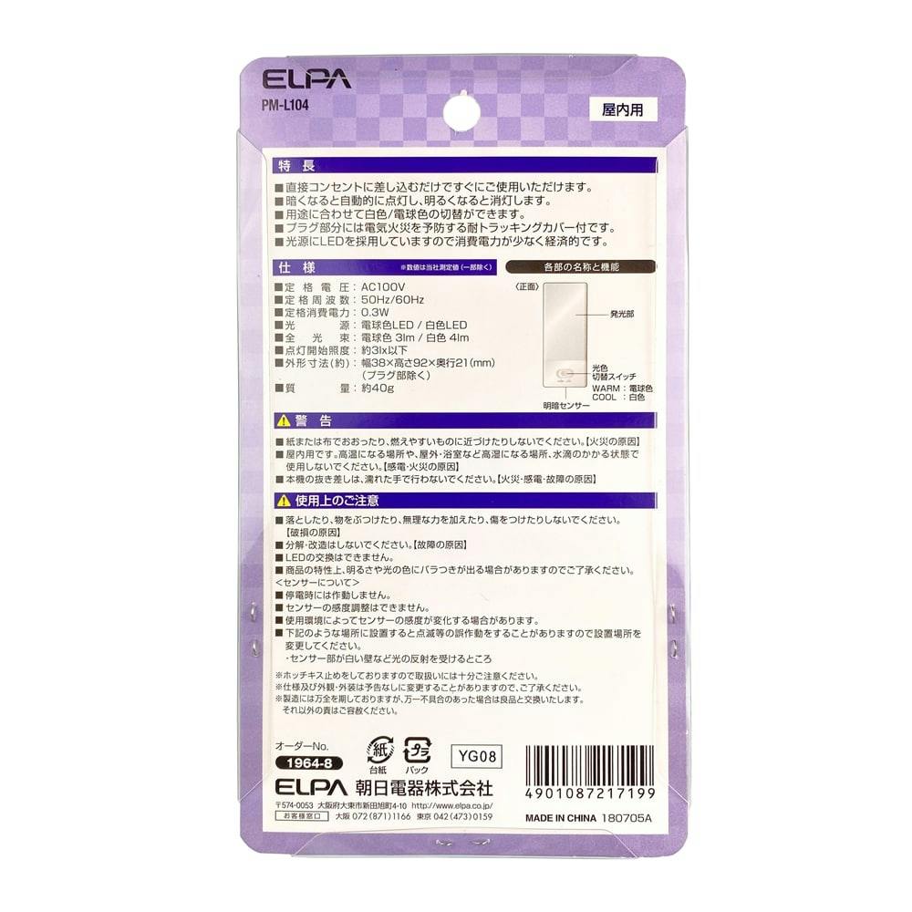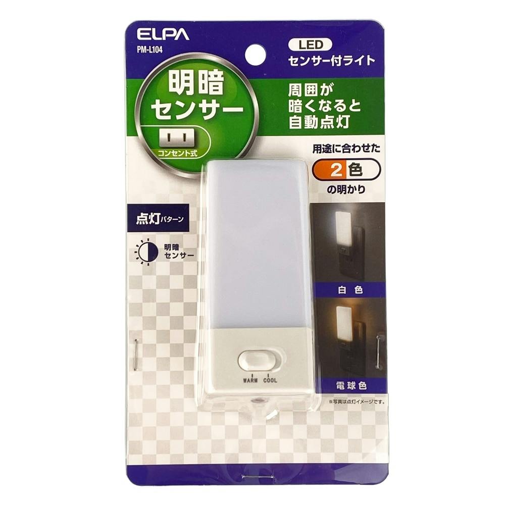 エルパ ELPA LED ナイトライト コンセント式 明暗センサー 白色光・電球色光 PM-L104