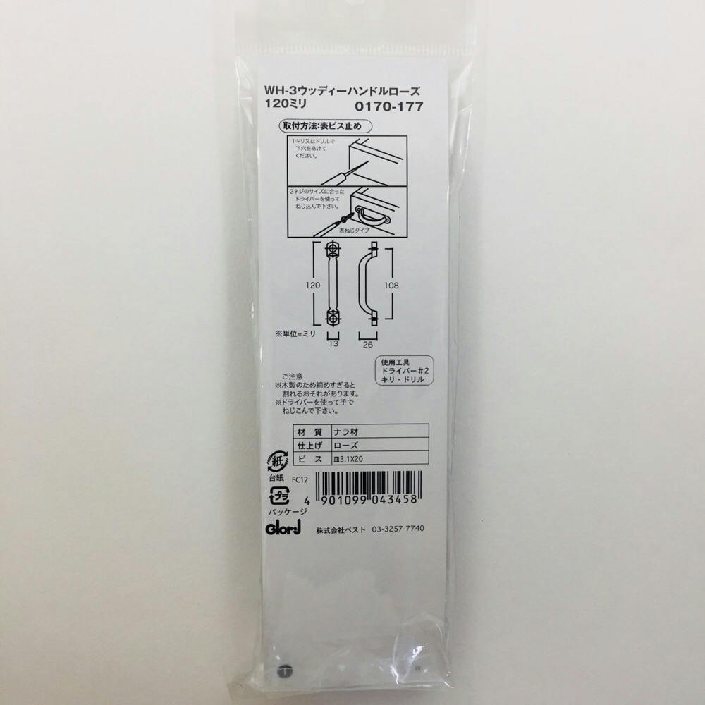 ウッディハンドル WH3 ローズ 120mm
