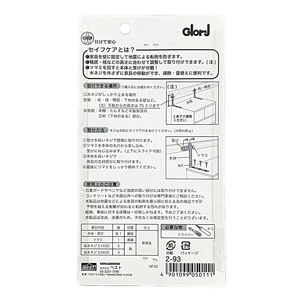 地震対策 セイフケア 家具の転倒防止 2-93 1本分