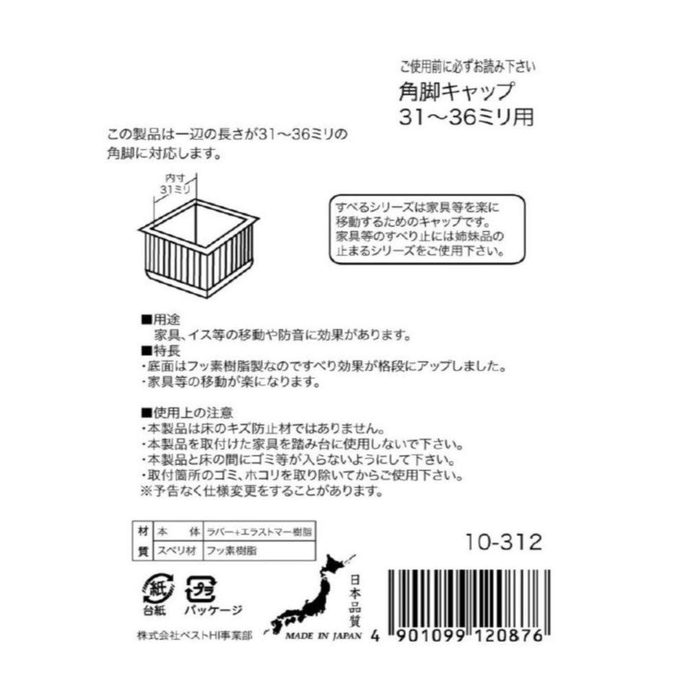 家具動楽 家具などの移動にラクにスベ~ル 角脚キャップ 31~33mm用 10-312 4個入 ブラウン