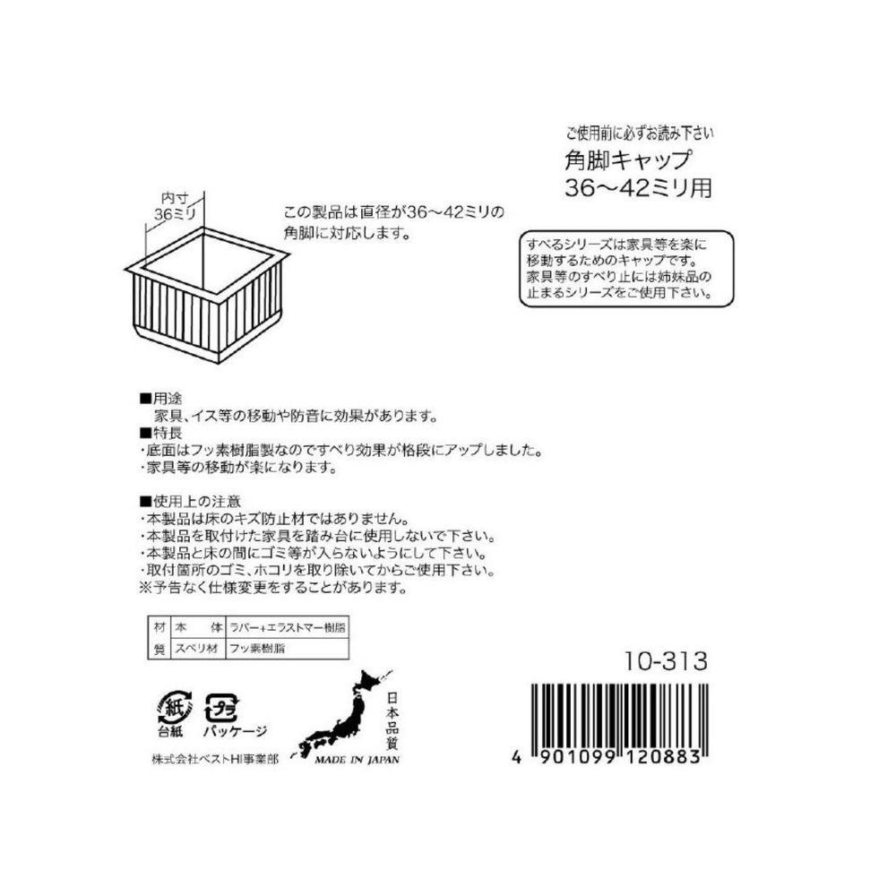 • 家具動楽 家具などの移動にラクにスベ~ル 角脚キャップ 36~38mm用 10-313 4個入 ブラウン