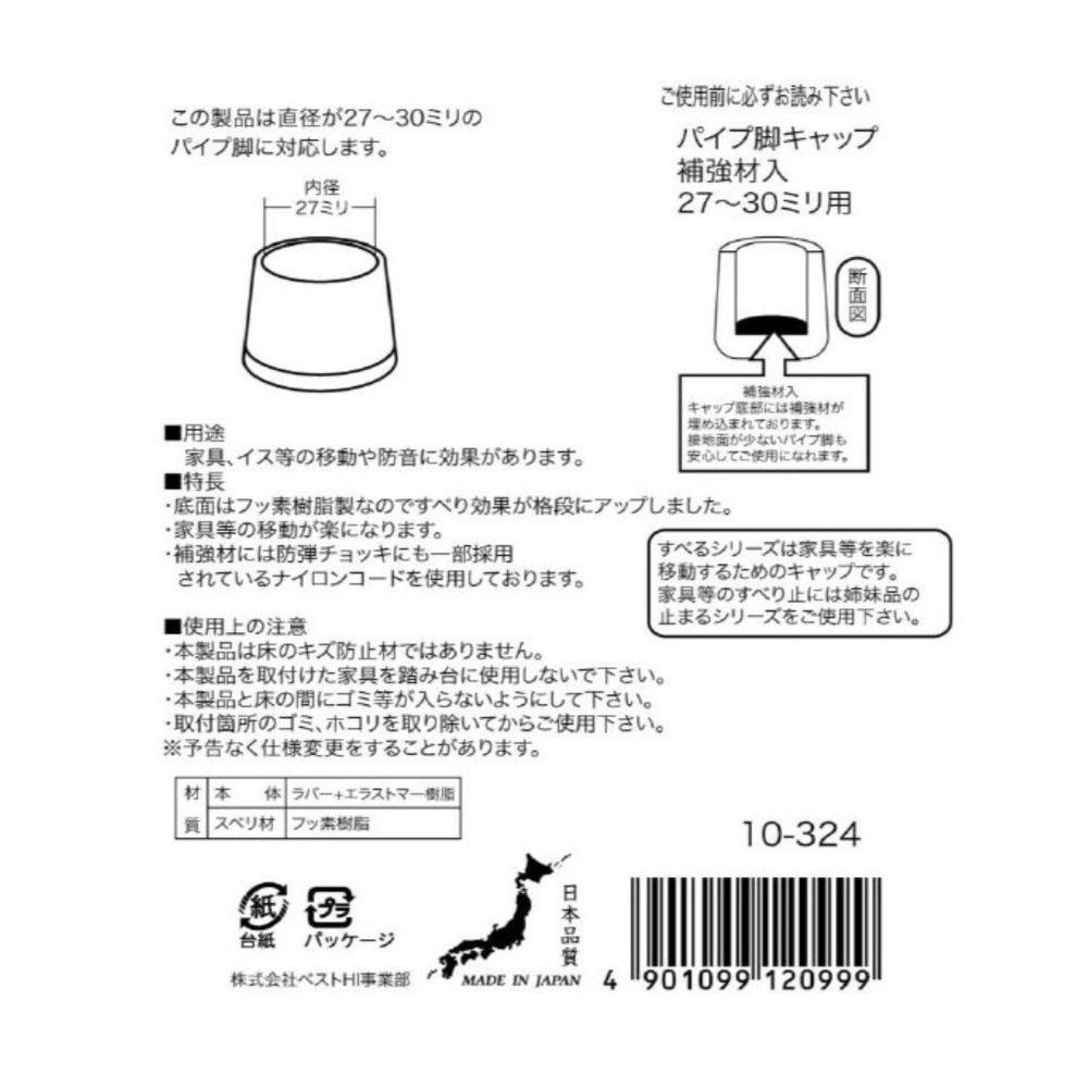家具動楽 家具などの移動にラクにスベ~ル パイプ脚キャップ 補強剤入 27~29mm用 10-324 4個入 グレー