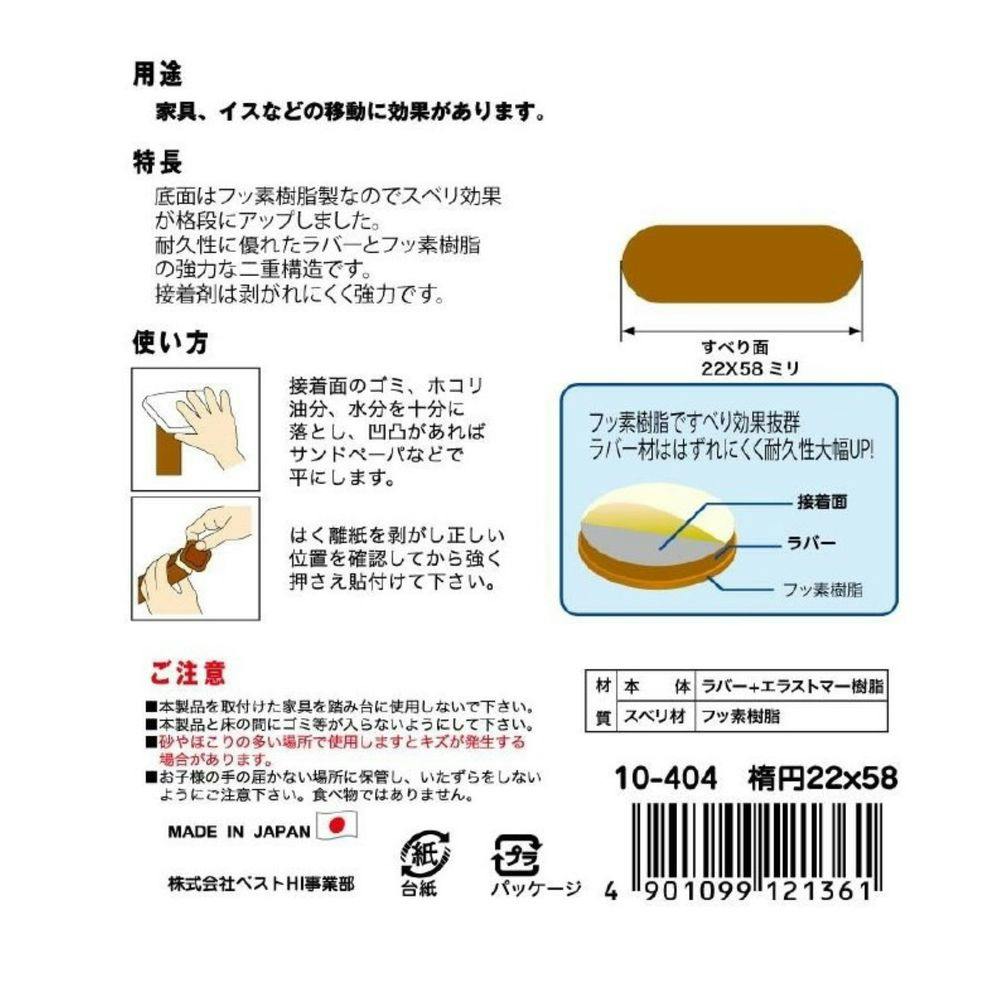家具動楽 家具などの移動にラクにスベ~ル 粘着付 楕円22×58mm 10-404 4個入