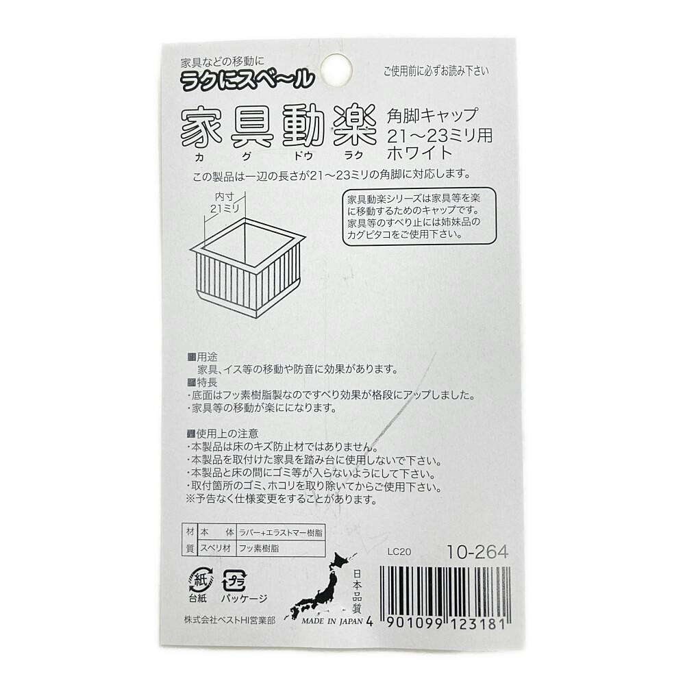 家具動楽 家具などの移動にラクにスベ~ル 角脚キャップ 21~23mm用 10-264 4個入 ホワイト