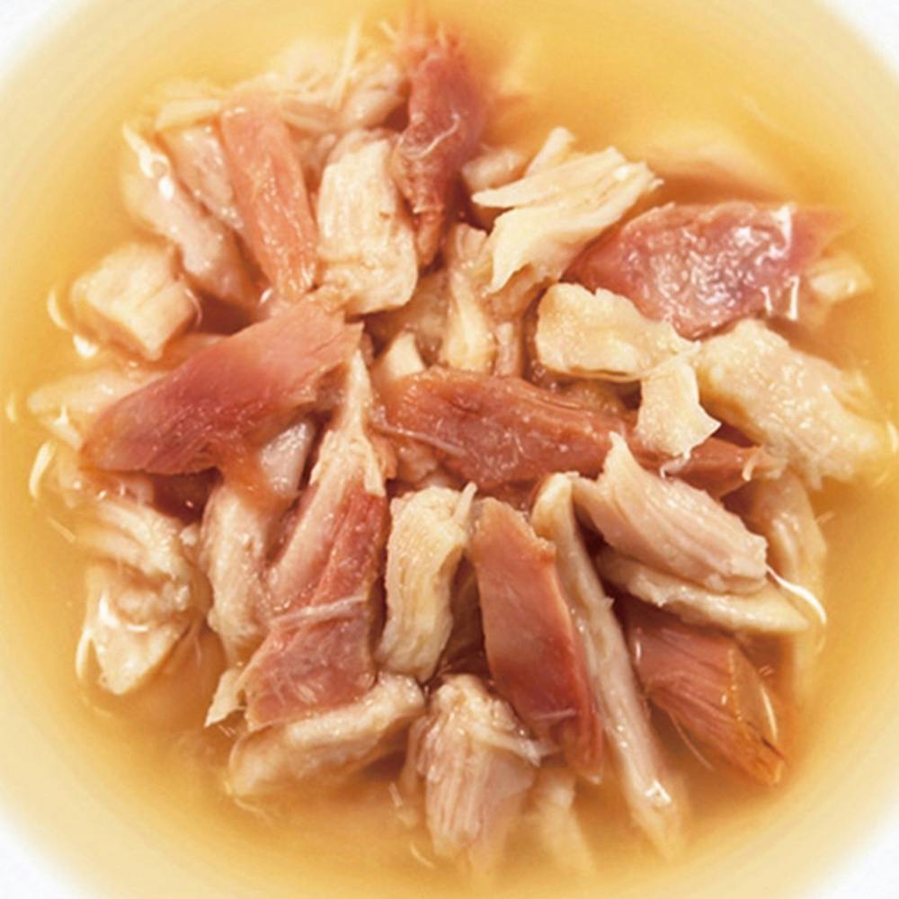 粗たん白質:6.5%以上、粗脂肪:0.2%以上、粗繊維:0.1%以下、粗灰分:1.0%以下、水分:92.0%以下、約30kcal/缶