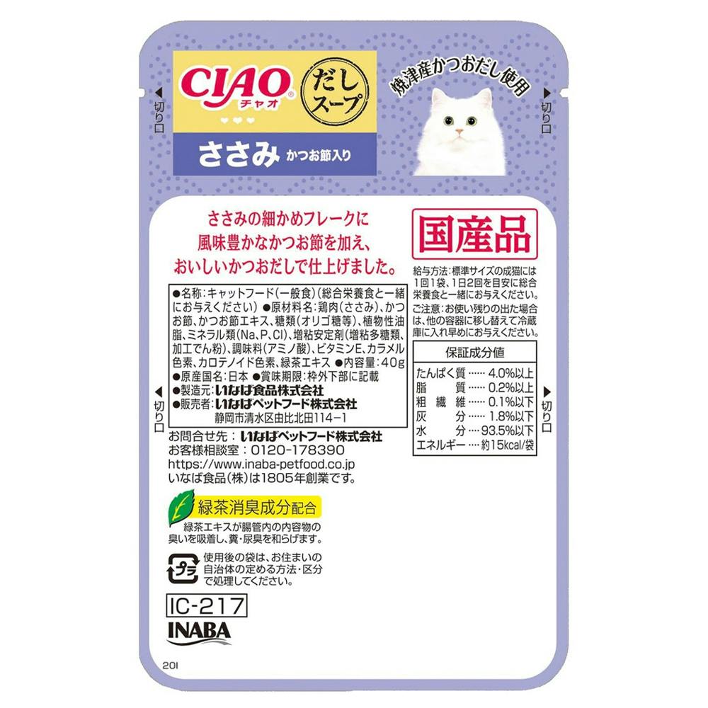 いなば CIAO だしスープ ささみ かつお節入り 40g