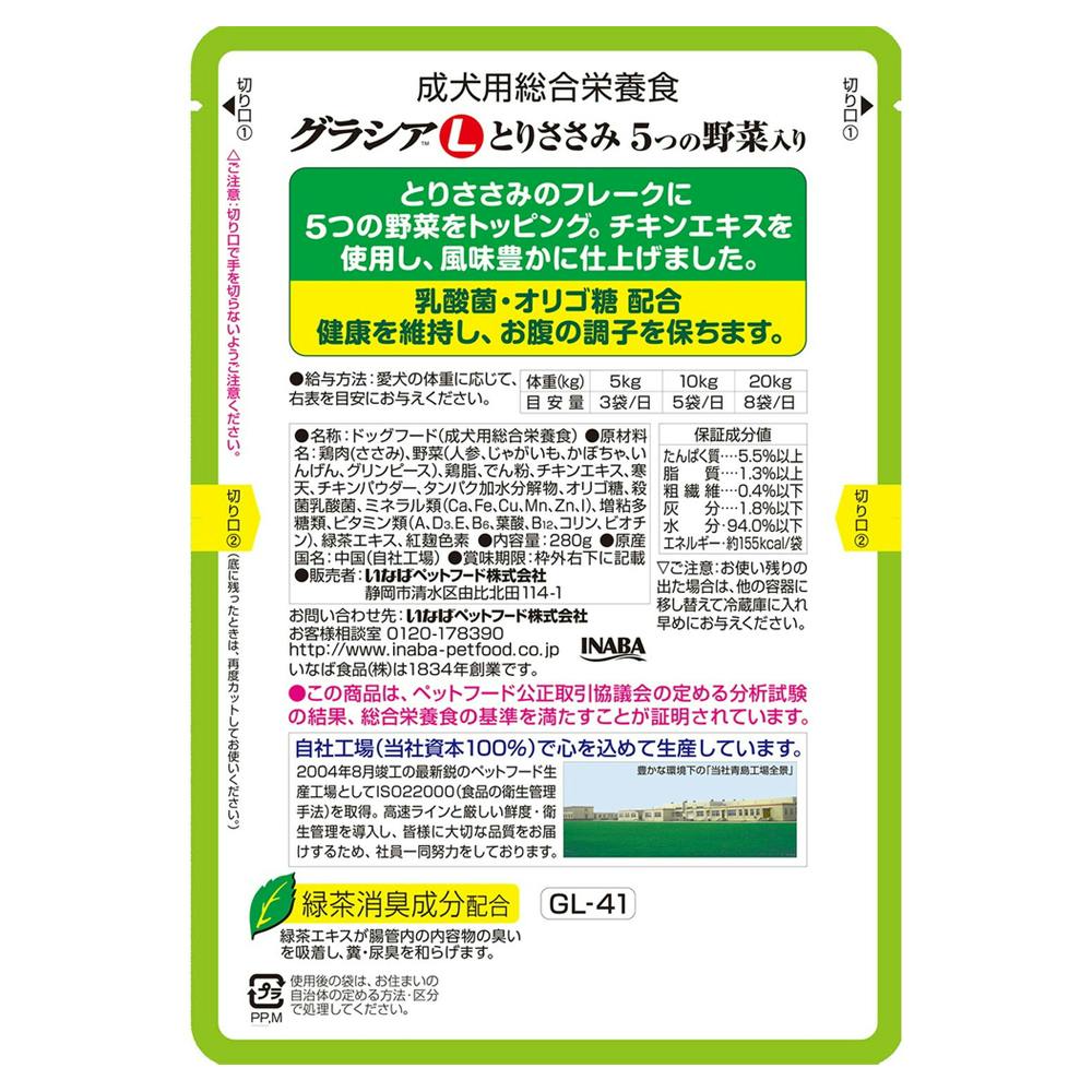 • いなば グラシアL とりささみ 5つの野菜入り280g
