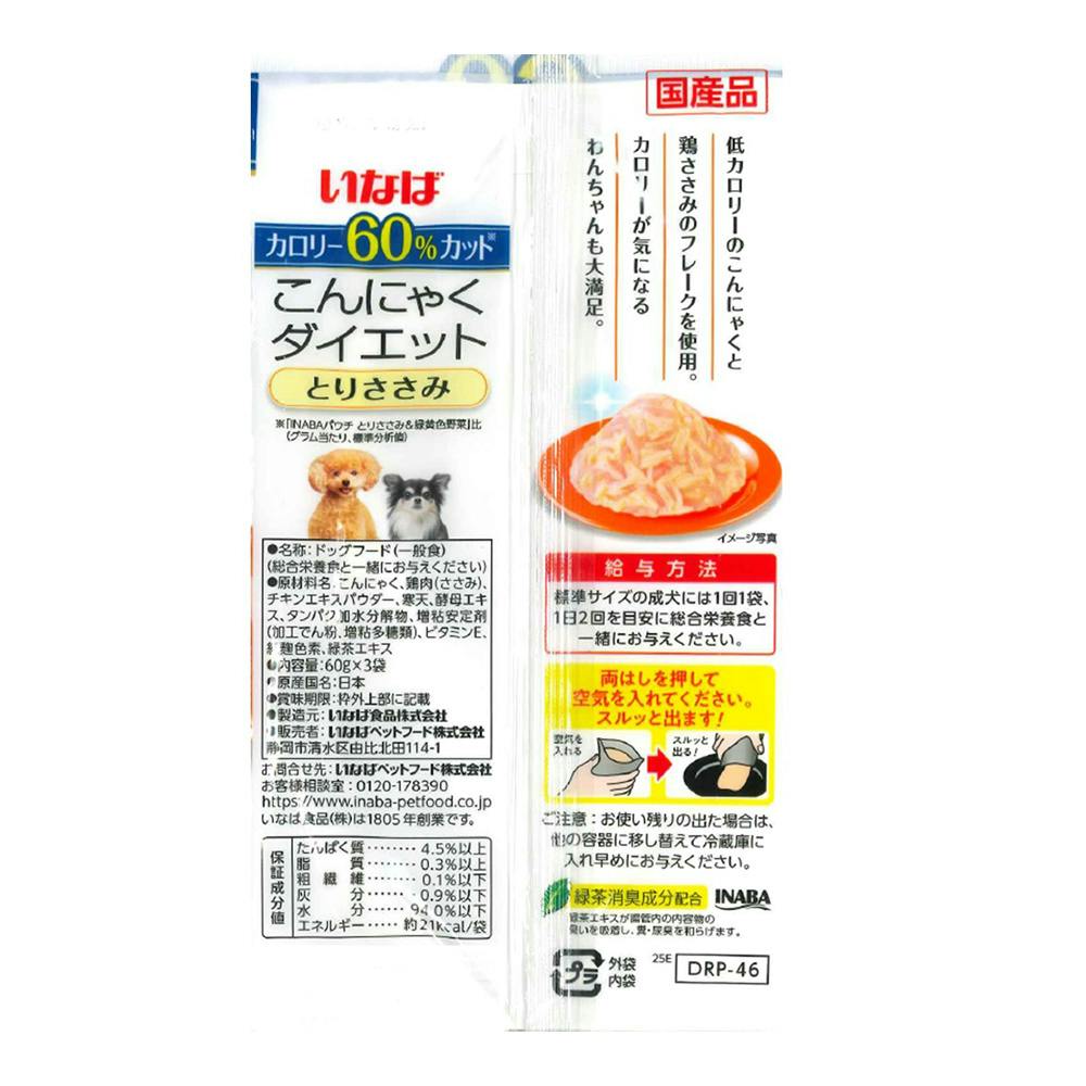 こんにゃくダイエット パウチ とりささみ 60g×3袋