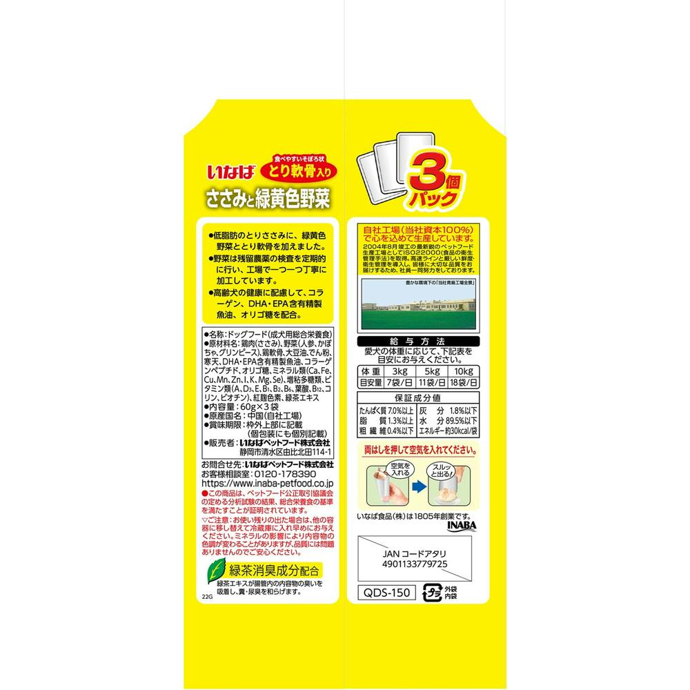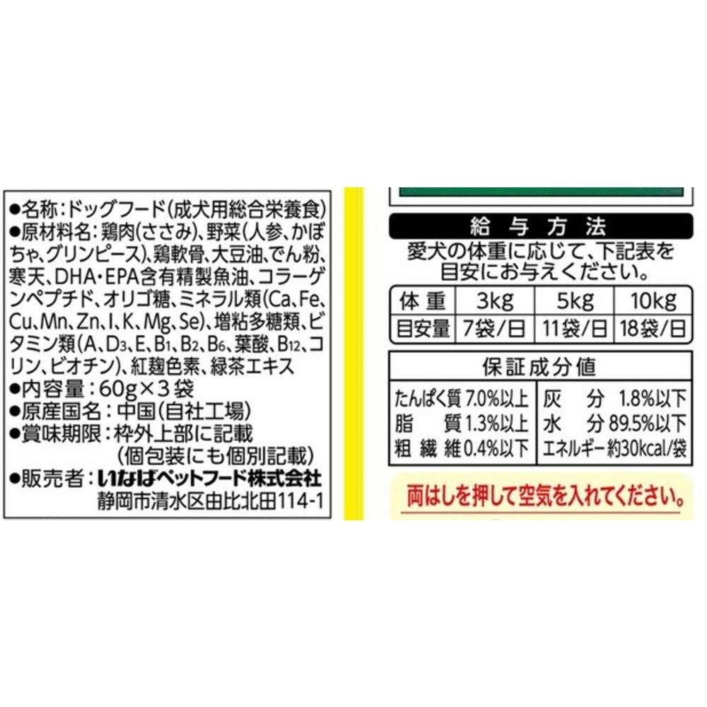 いなば ささみと緑黄色野菜 とり軟骨入り 14歳からの 3個パック 60g×3袋