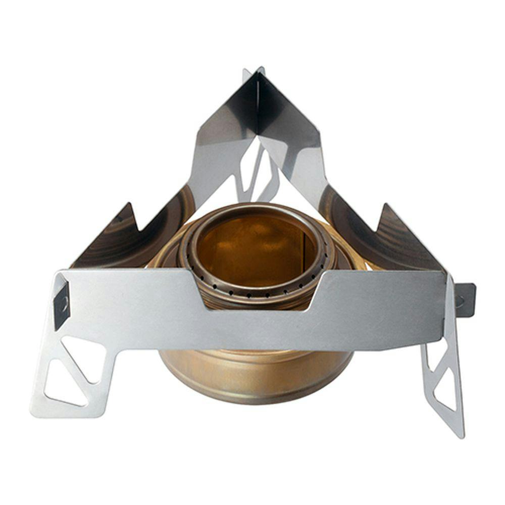 肉抜き加工を施して軽量化を図った3枚のプレートを組み合わせて使う、トランギアのアルコールバーナー専用のゴトクです。