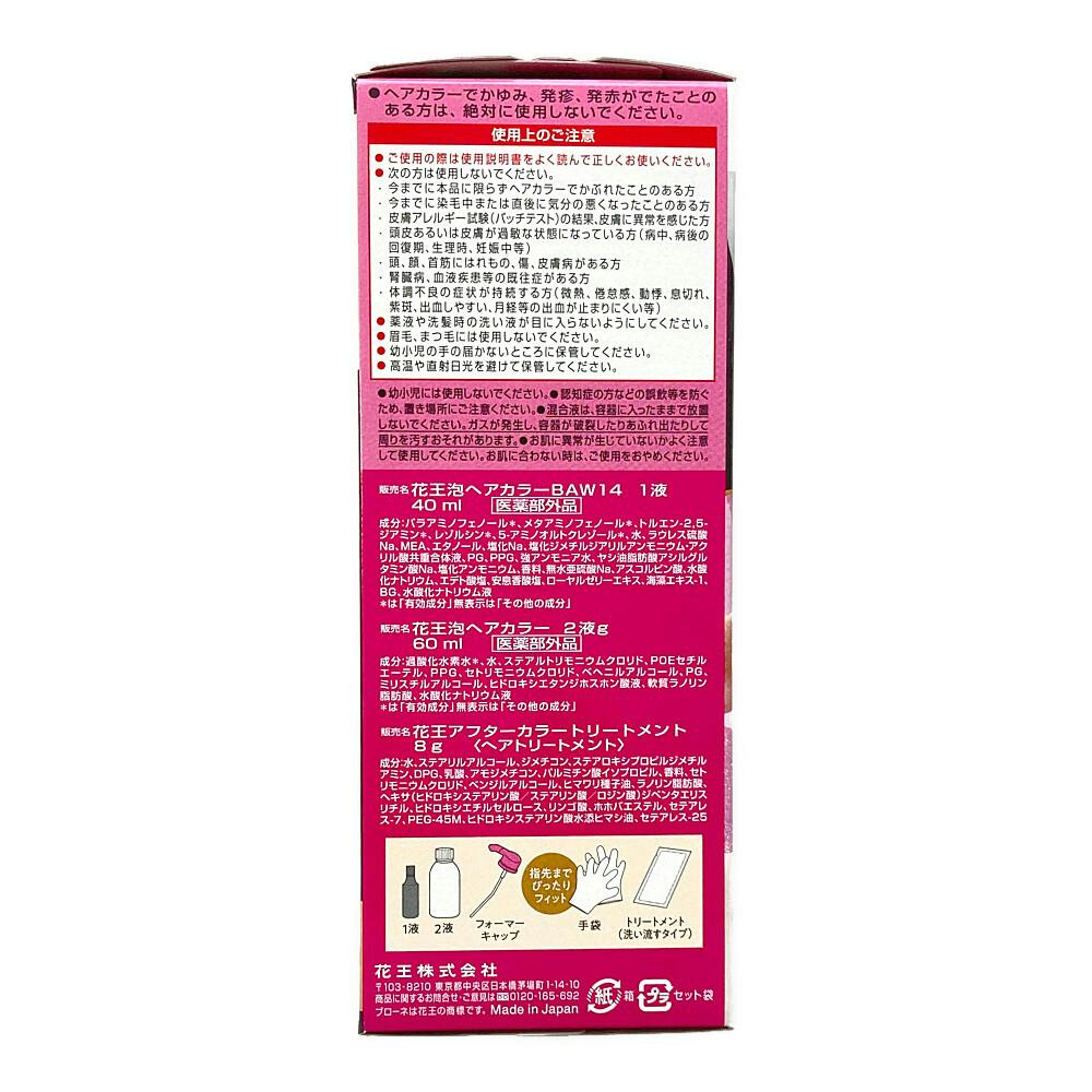 花王泡ヘアカラーBAW14 1液:40mL、花王ヘア泡カラー 2液g:60mL、花王アフターカラートリートメント:8g