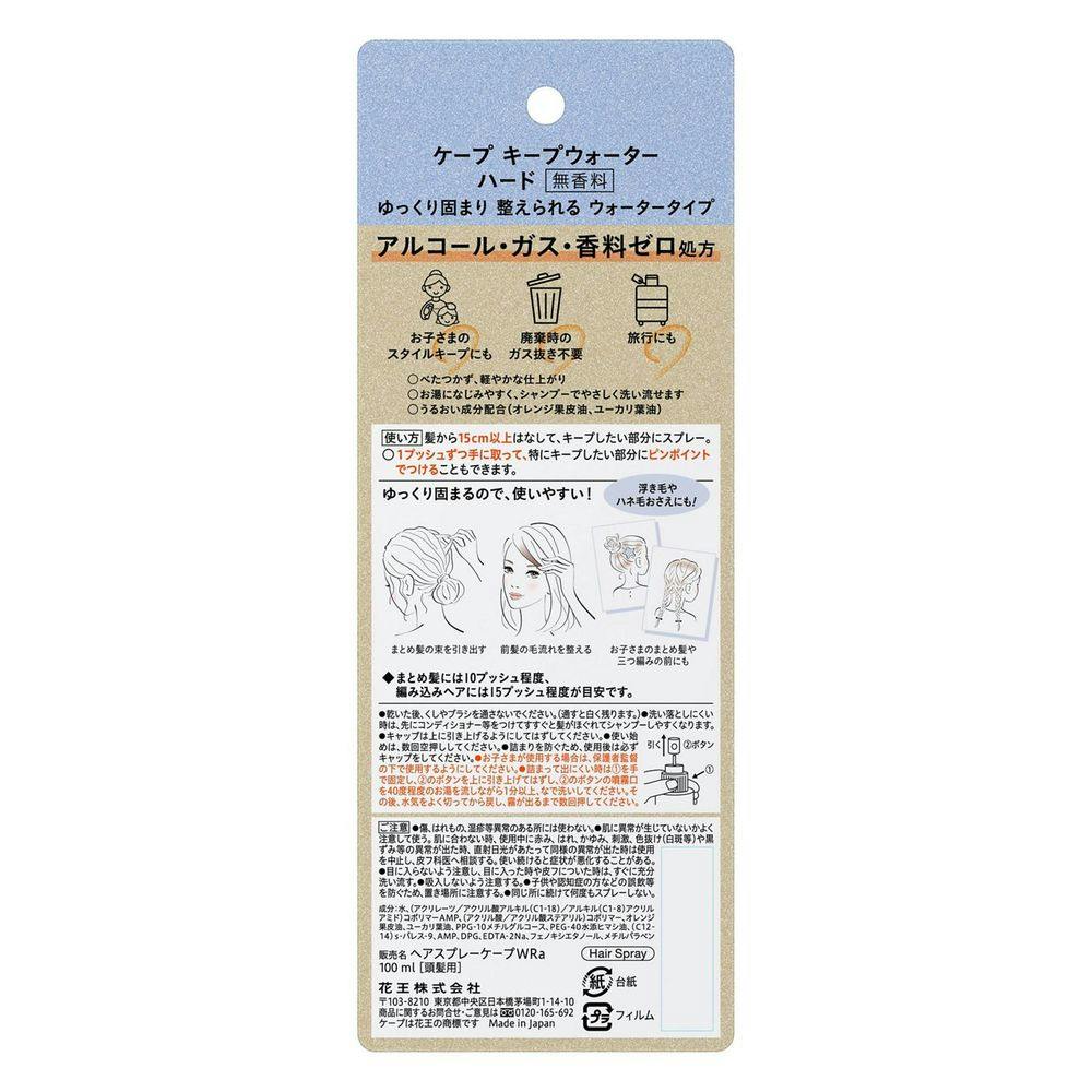 アルコール、ガス、香料 ゼロ処方。ウォータータイプのヘアスプレー。ヘアスタイルをしっかりキープ。