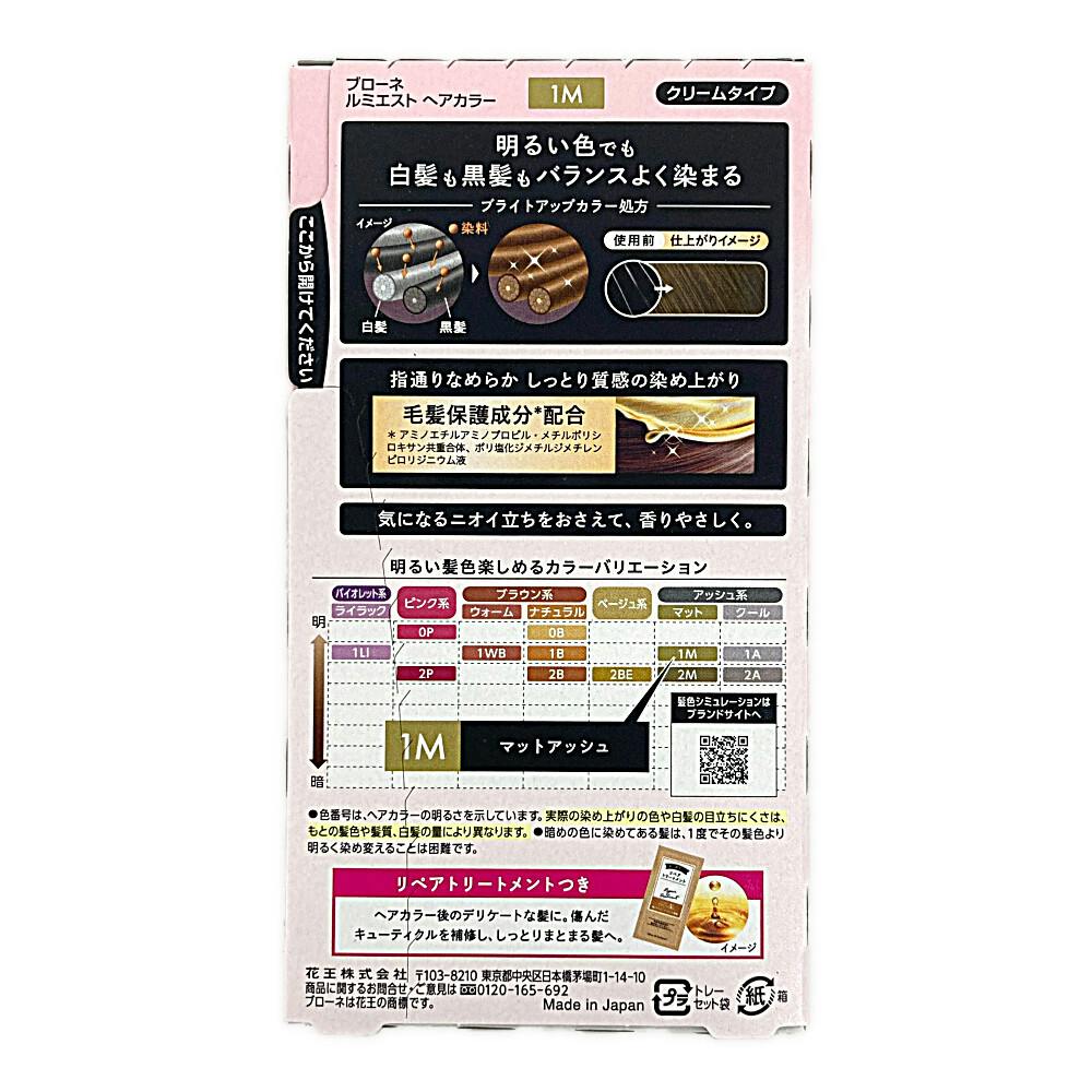 ブローネ ルミエスト 白髪用ヘアカラー クリームタイプ 1M マットアッシュ