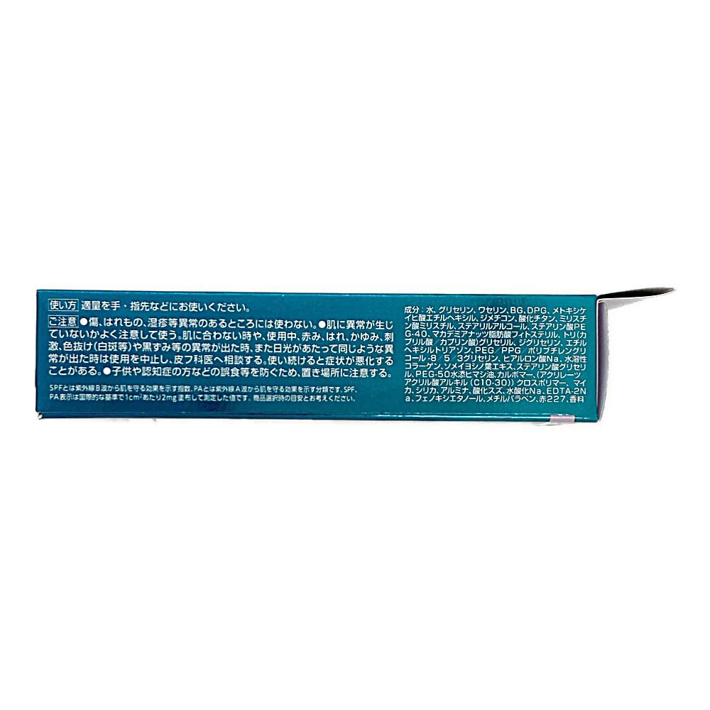 水、グリセリン、ワセリン、BG、DPG、メトキシケイヒ酸エチルヘキシル、ジメチコン、酸化チタン、ミリスチリン酸ミリスチル、ステアリルアルコール、ステアリン酸PEG-40、マカデミアナッツ脂肪酸フィトステリル、トリ(カプリル酸/カプリン酸)グリセリル、など