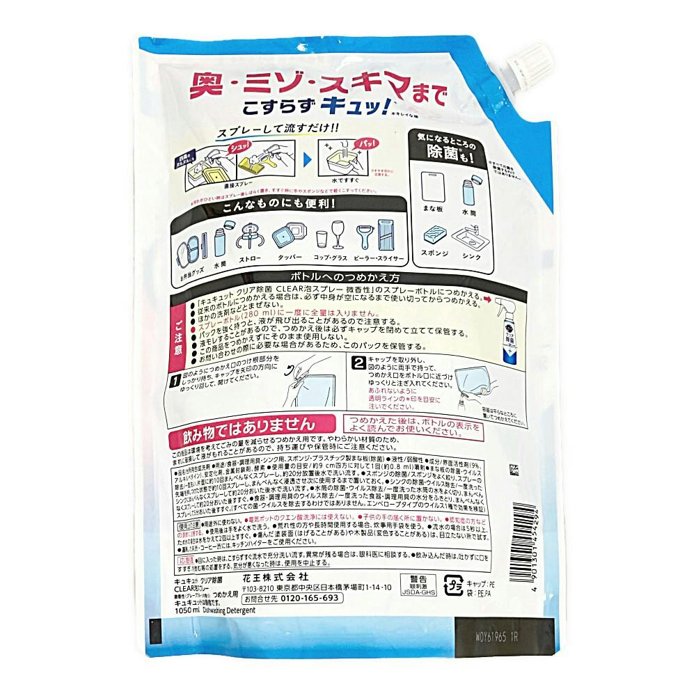 キュキュット クリア除菌CLEAR泡スプレー 微香性(グレープフルーツの香り) 詰替 1050ml