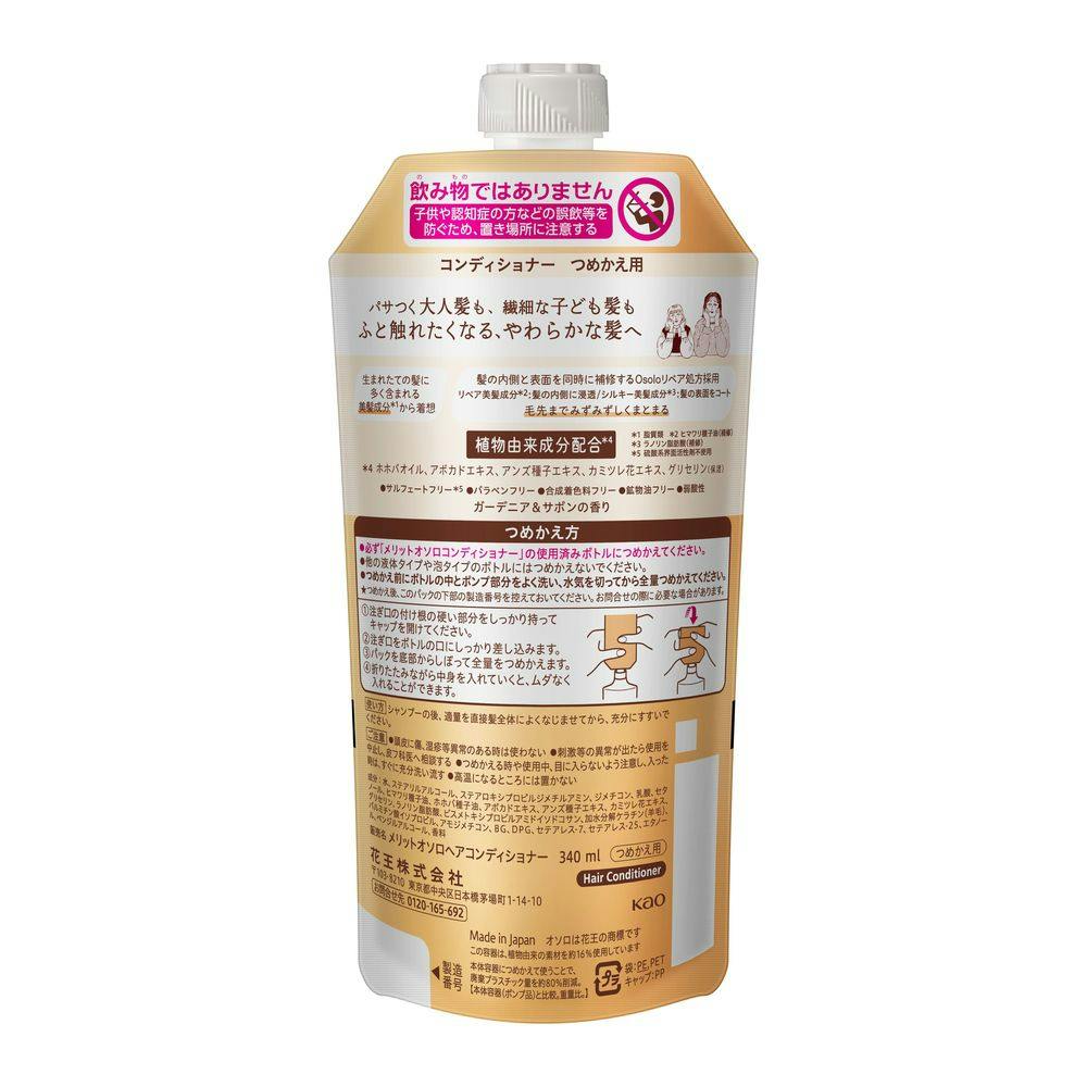 ●必ず「メリットオソロコンディショナー」の使用済みボトルにつめかえてください。●他の液体タイプや泡タイプのボトルにはつめかえないでください。●つめかえ前にボトルの中とポンプ部分をよく洗い、水気を切ってから全量つえかえてください。など