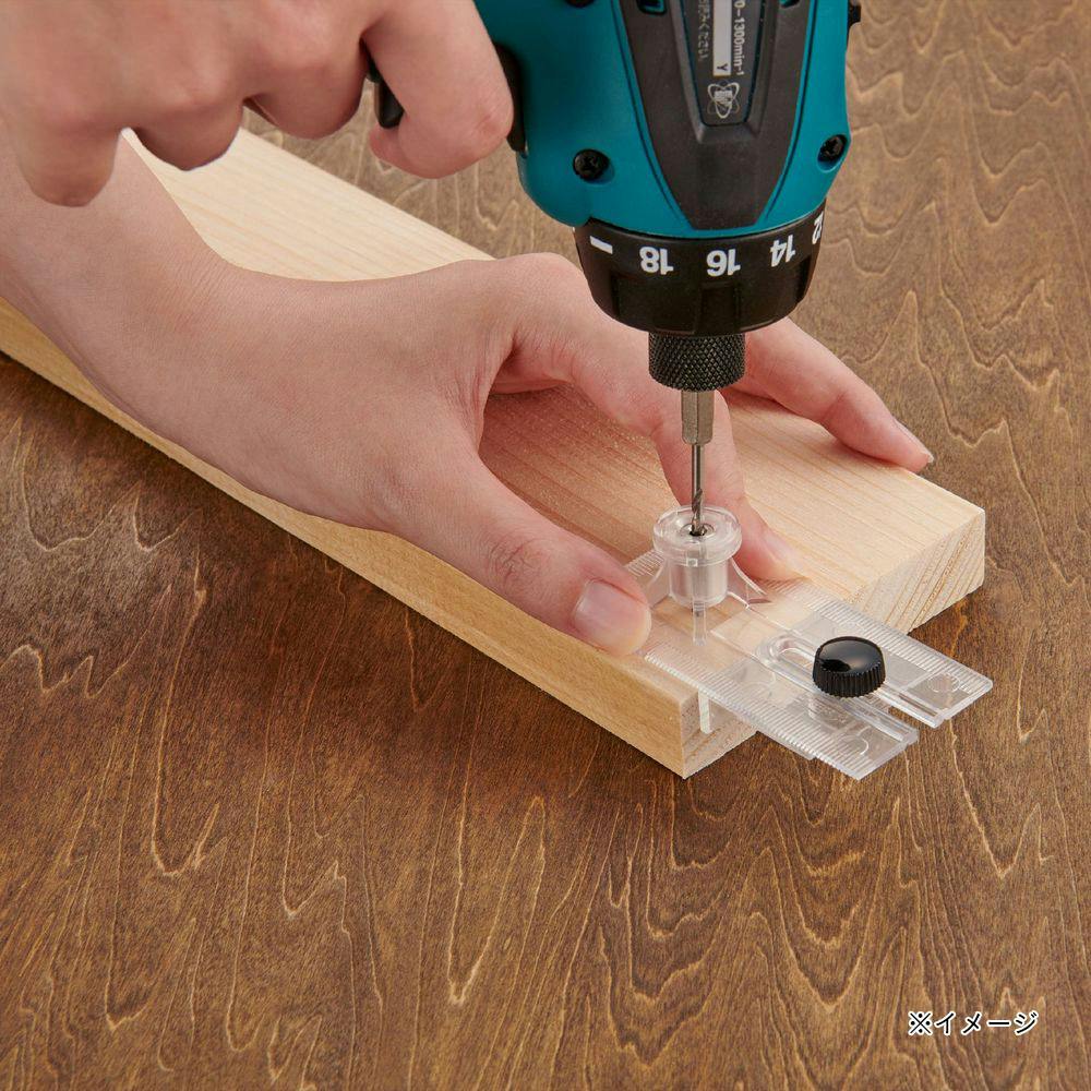 ●透明ボディなのでドリルの先端を見ながら位置決めが可能です●側面ストッパーを使う事で穴あけ位置をそろえやすいです。