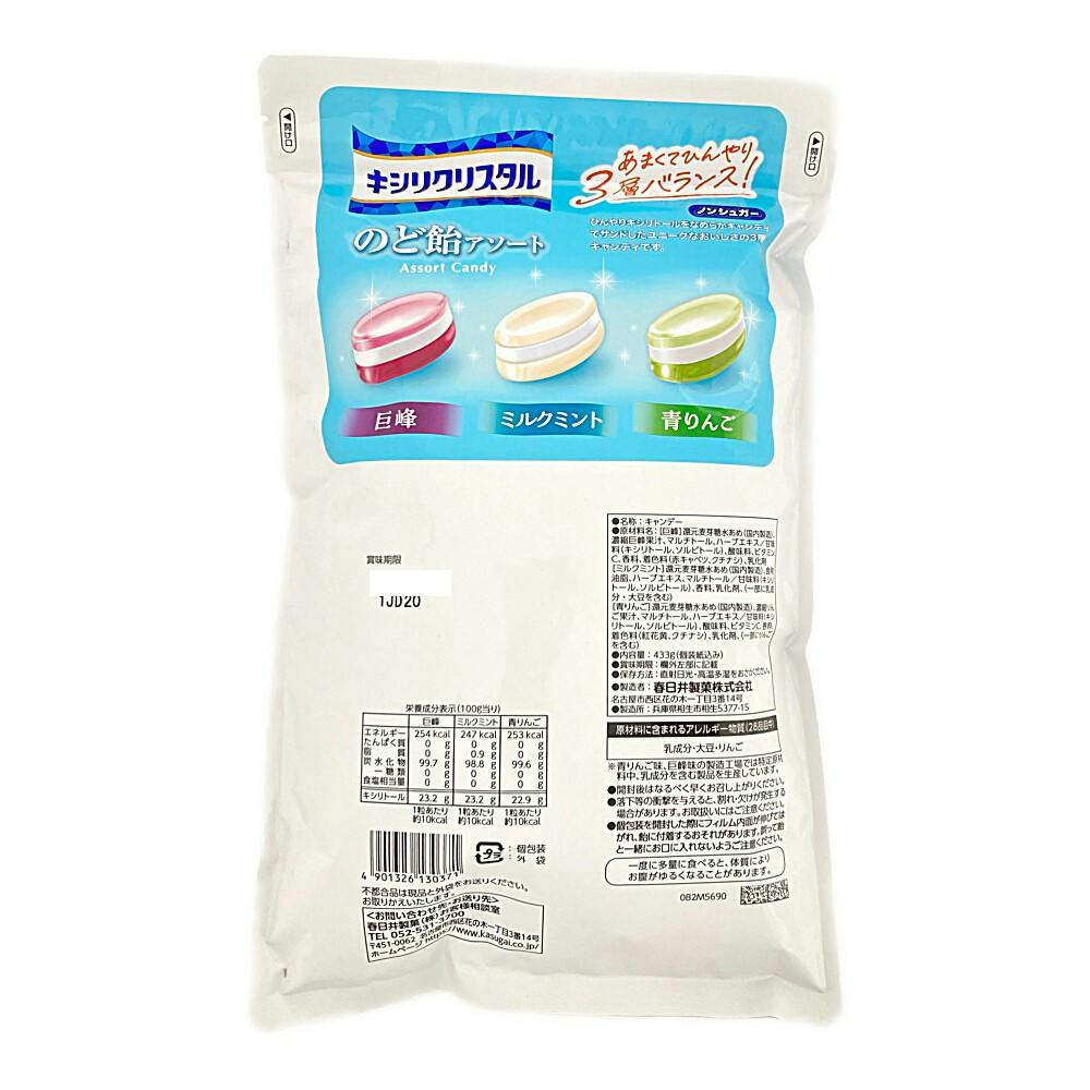 ●ノンシュガー ●たっぷり約6袋分(メーカーキシリクリスタルシリーズ商品の) ●あまくてひんやり3層バランス! ●巨峰・ミルクミント・青りんご、のど飴アソート ●ミルク香料使用