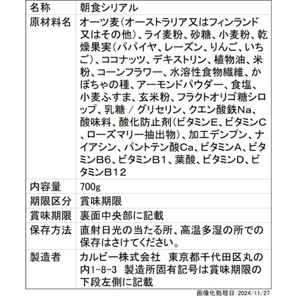 クザク食感のグラノーラとフルーツの酸味と甘みがひとさじで楽しめる朝食シリアル