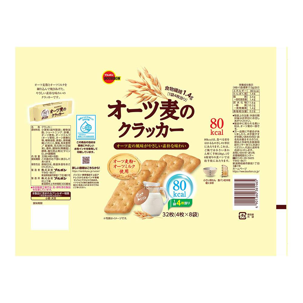 オーツ麦粉とオーツミルクを練り込んで焼きあげた、やさしい素朴な味わいのクラッカーです。