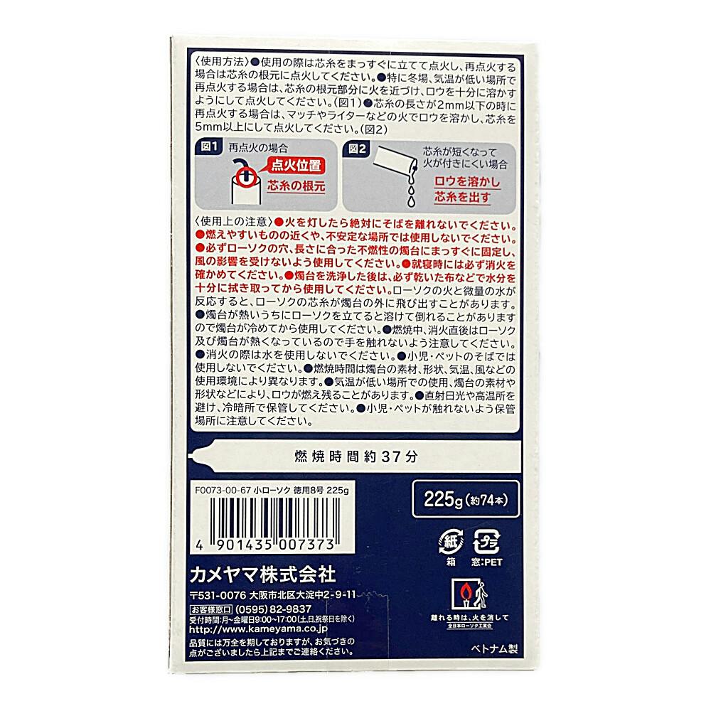 ●火を灯したら絶対にそばを離れないでください●燃えやすいものの近くや、不安定な場所では使用しないでください●必ずローソクの穴、長さに合った不燃性の燭台にまっすぐに固定し、風の影響を受けないよう使用してください●就寝時には必ず消火を確かめてください 等