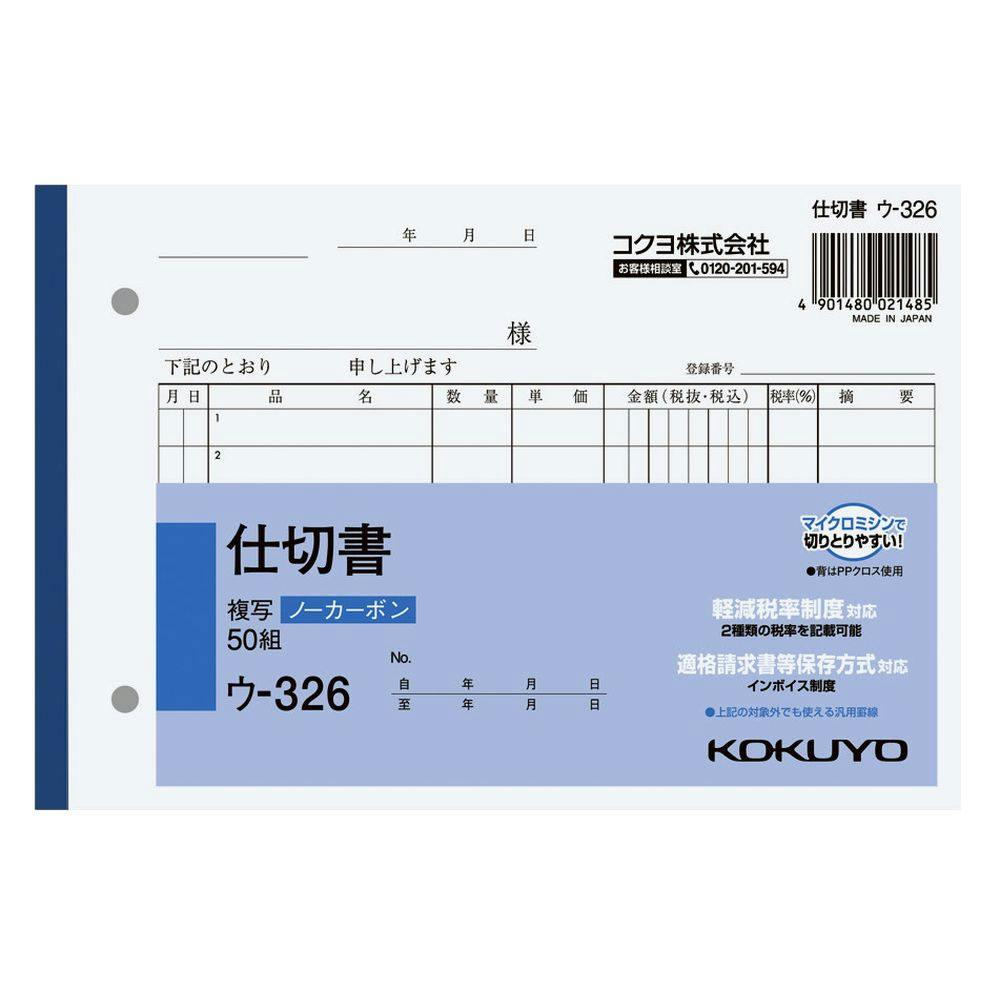 コクヨ NC複写簿 ノーカーボン仕切書 B6 ヨコ型 7行50組 ウー326