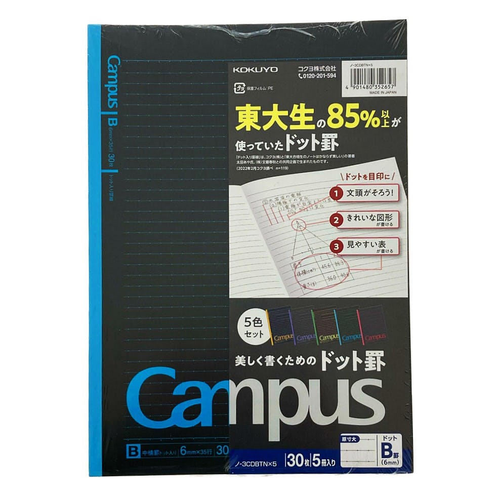 コクヨ キャンパスノート ブラックカラー 5色パック ドット入り罫線B罫