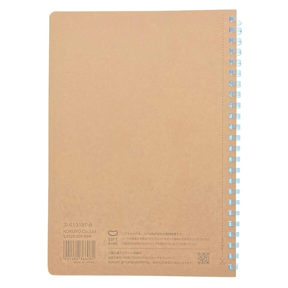 ●やわらかリングを採用したリングノートです。●折り返せるので狭い場所でも書きやすい。●きれいに切り離せる、マイクロミシン目入りのカットオフタイプです。●「美しく書く」をサポートするドット入り罫線を採用しました。