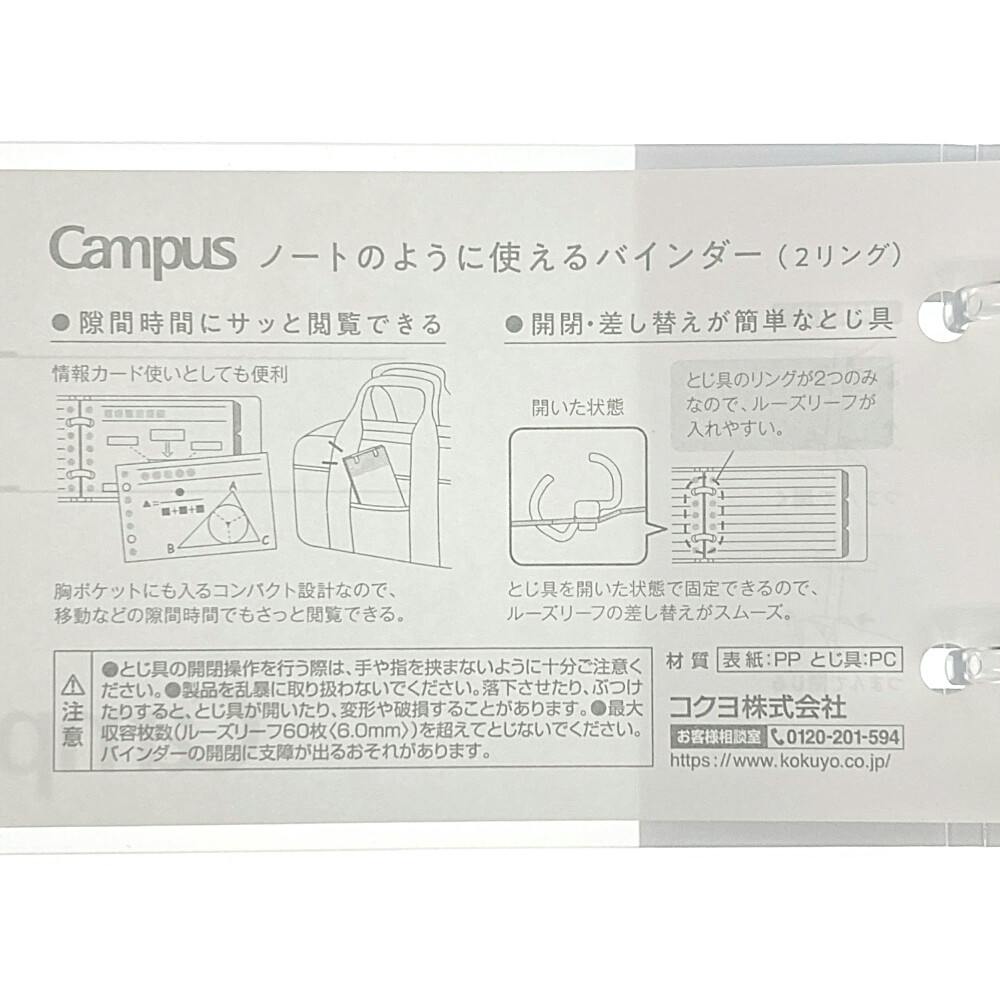 コクヨ キャンパスノートのように使えるバインダー 2リング A7 7穴 グレー ルーNP116M