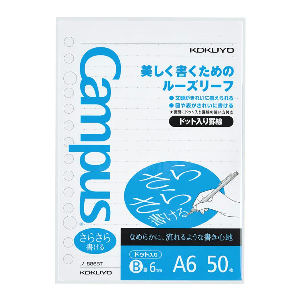 コクヨ ルーズリーフB罫ドット入りA6 50枚 ノー886BT