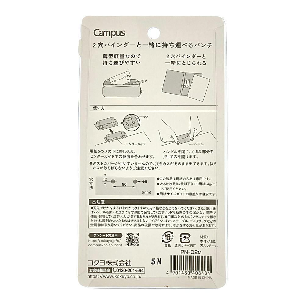 コクヨ キャンパス 2穴バインダーと一緒に持ち運べるパンチ グレー PN-C2M