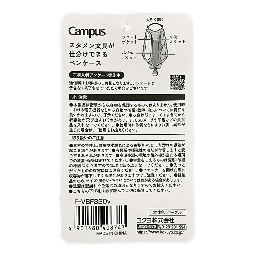 • コクヨ キャンパス スタメン文具が仕分けできるペンケース パープル F-VBF320V