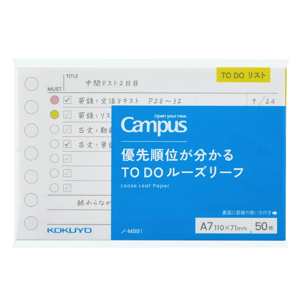 コクヨ キャンパス 優先順位が分かるTODOルーズリーフ A7サイズ ノーM891