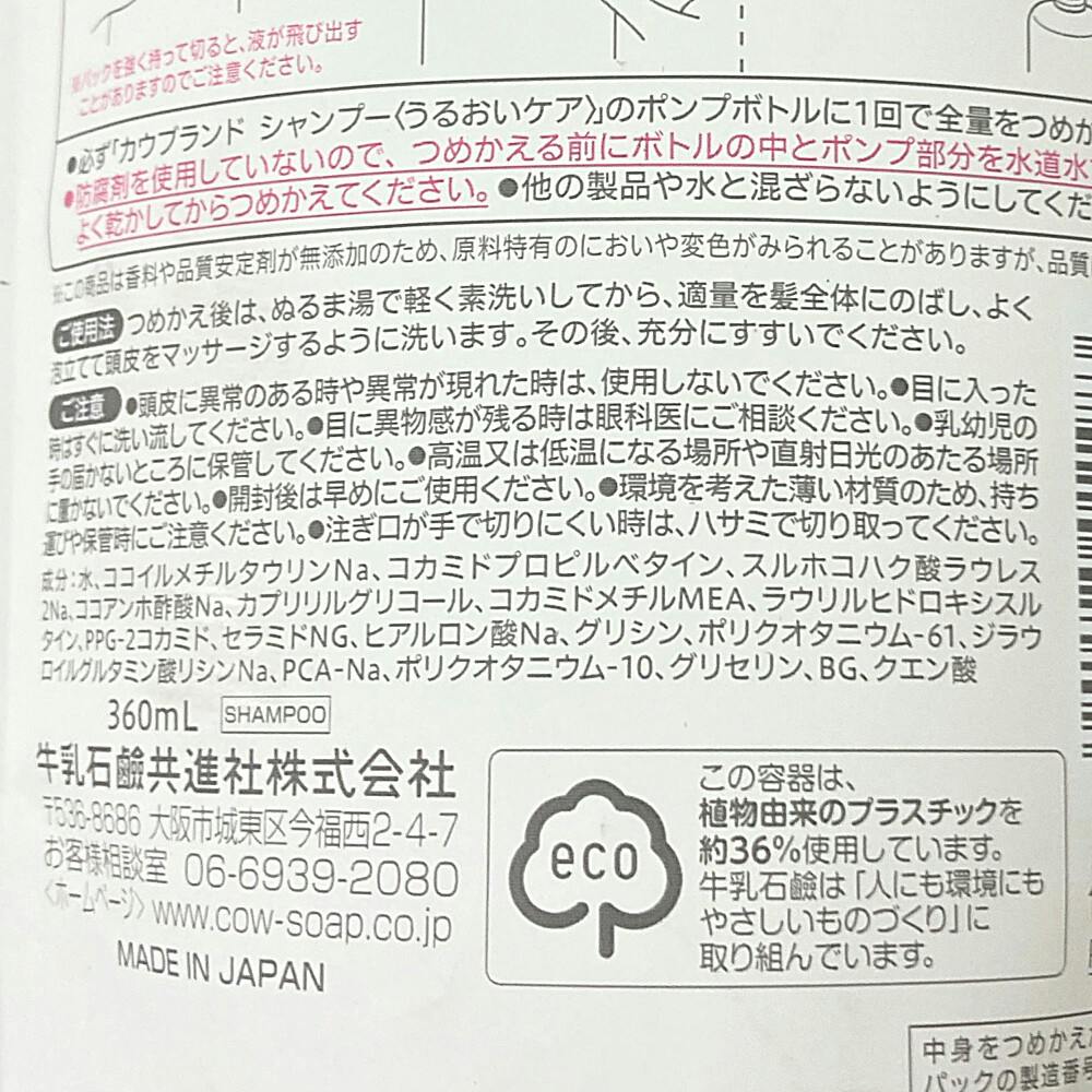 カウブランド 無添加シャンプー うるおいケア 詰替 360ml
