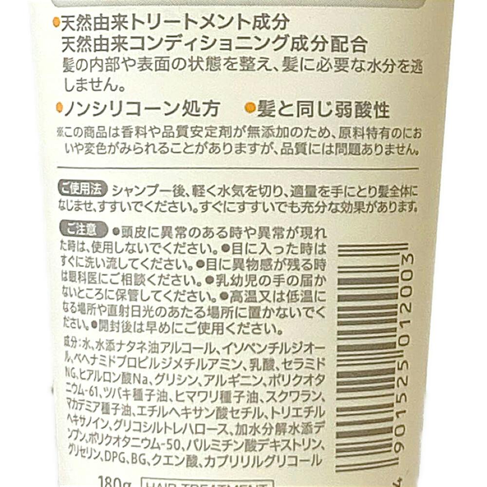 ●デリケート肌を考えた無添加(着色料・香料・パラベンなどの防腐剤・品質安定剤・アルコール(エタノール))・低刺激処方 ●素肌と同じ保湿成分・セラミド、ヒアルロン酸、アミノ酸配合。うるおい、まとまる髪へ ●毛先までまとまる(天然由来トリートメント成分配合)