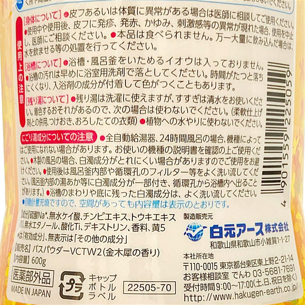 ●家庭用浴槽にお湯(約200L)を張り、本品20~30gを入れ、すぐにかき混ぜて溶かしきってから、入浴してください ●本品と他の入浴剤は併用しないでください ●使用後はフタをしっかり閉め、小児の手の届く所や高温多湿の場所に保管しないでください など