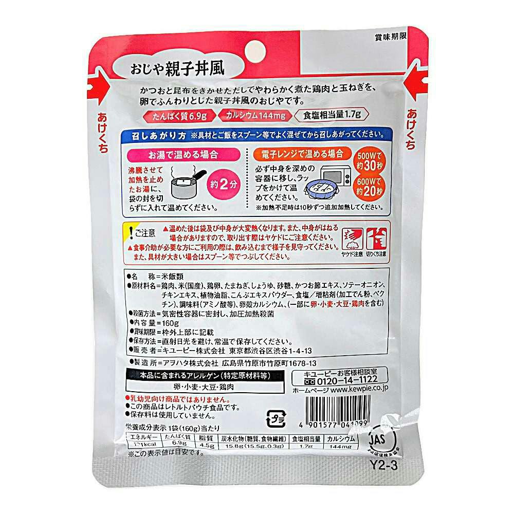 ●かつおと昆布をきかせただしでやわらかく煮た鶏肉と玉ねぎを、卵でふんわりとじた親子丼風のおじやです。●コシヒカリ使用