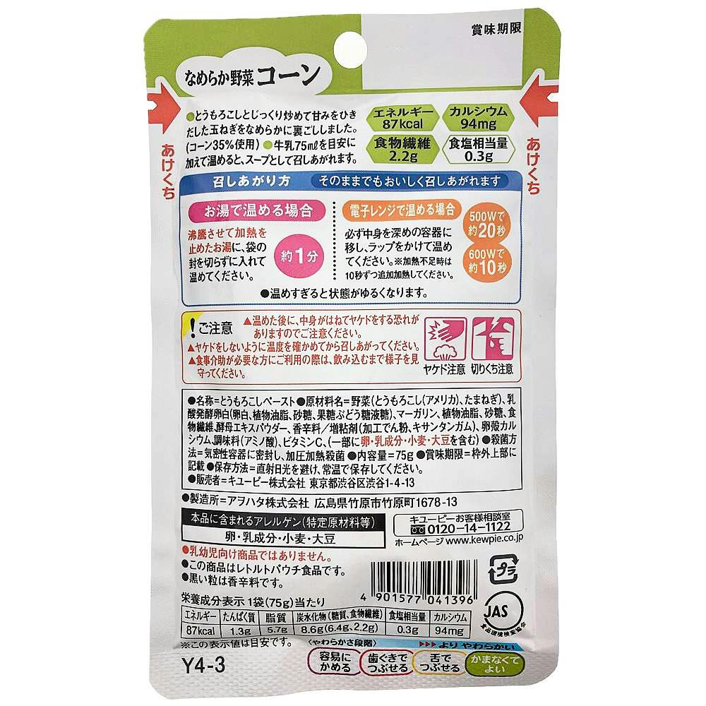 ●とうもろこしとじっくり炒めて甘みをひきだした玉ねぎをなめらかに裏ごししました。(コーン35%使用●牛乳75mlを目安に加えて温めると、スープとして召しあがれます。