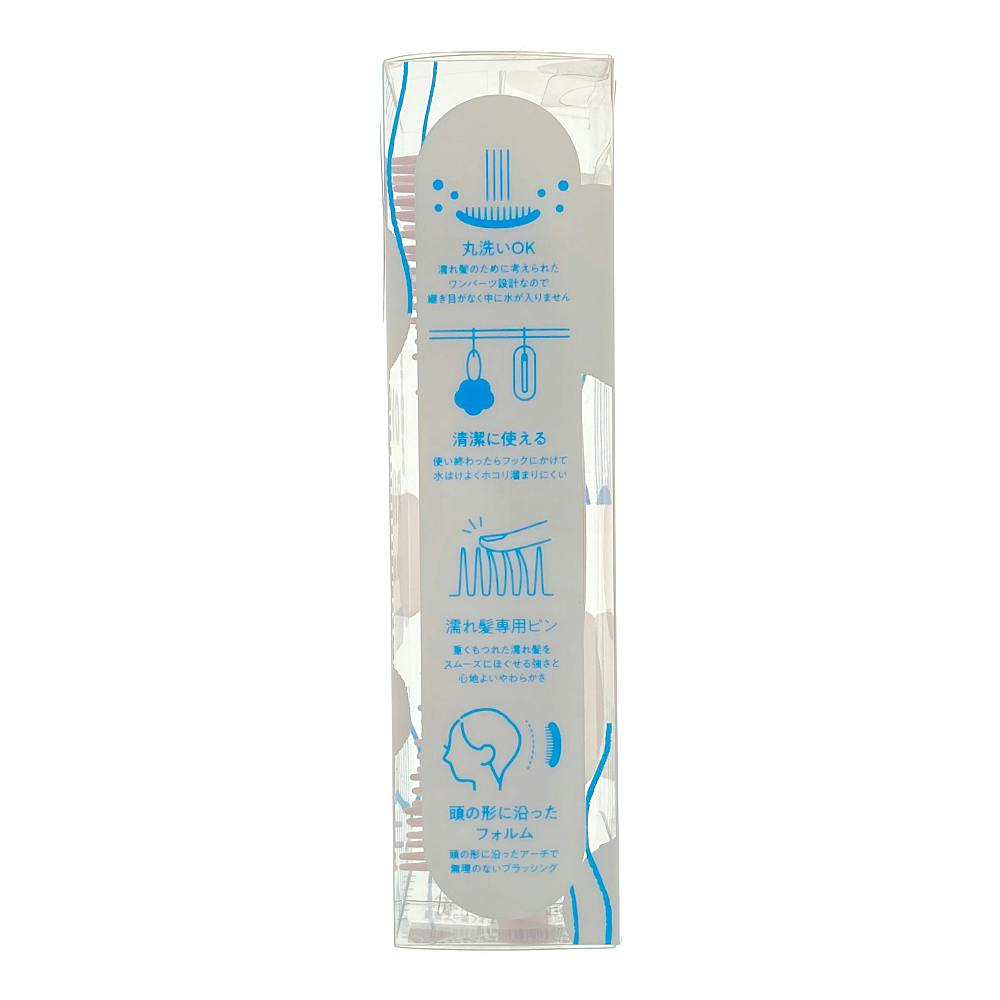 ●丸洗いOK:濡れ髪のために考えられたワンパーツ設計なので継ぎ目がなく中に水が入りません●清潔に使える:使い終わったらフックにかけて水はけよくホコリ溜まりにくい●濡れ髪専用ピン:重くもつれた濡れ髪をスムーズにほぐせる強さと心地よいやわらかさ