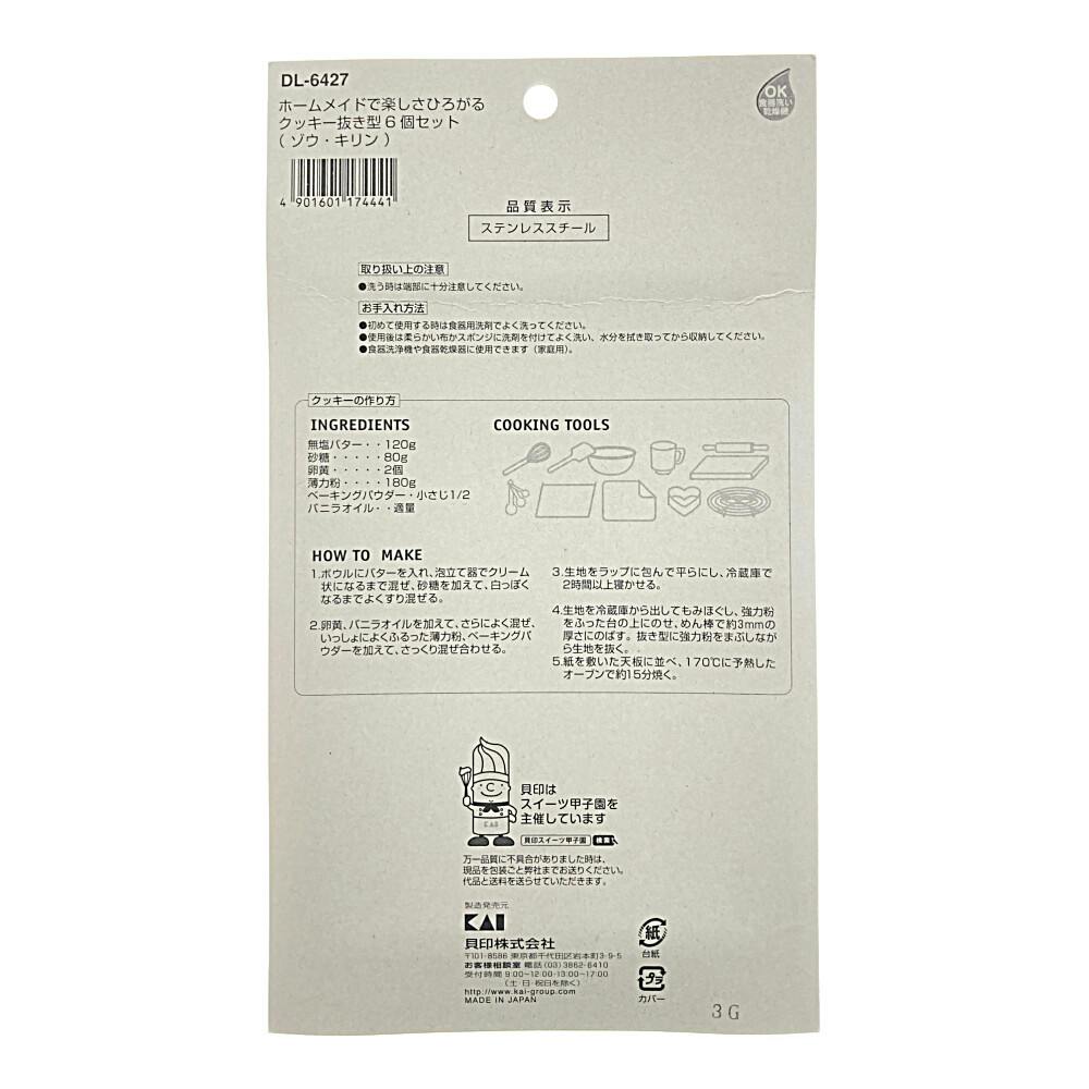 KHS クッキー抜型 6個セット (ゾウ・キリン)