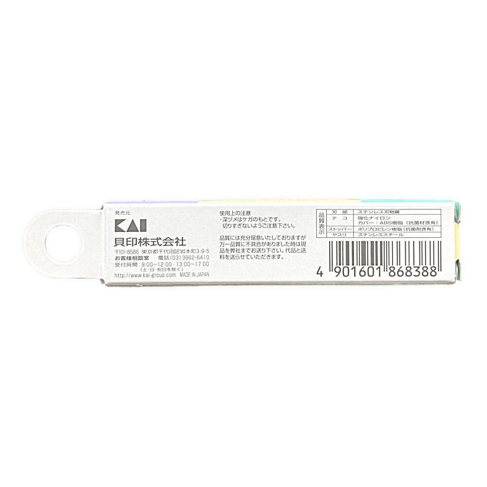 刃部/ステンレス刃物鋼、デコ/強化ナイロン、カバー/ABS樹脂(抗菌材含有)、ストッパー/ポリプロピレン樹脂(抗菌剤含有)、ヤスリ/ステンレススチール