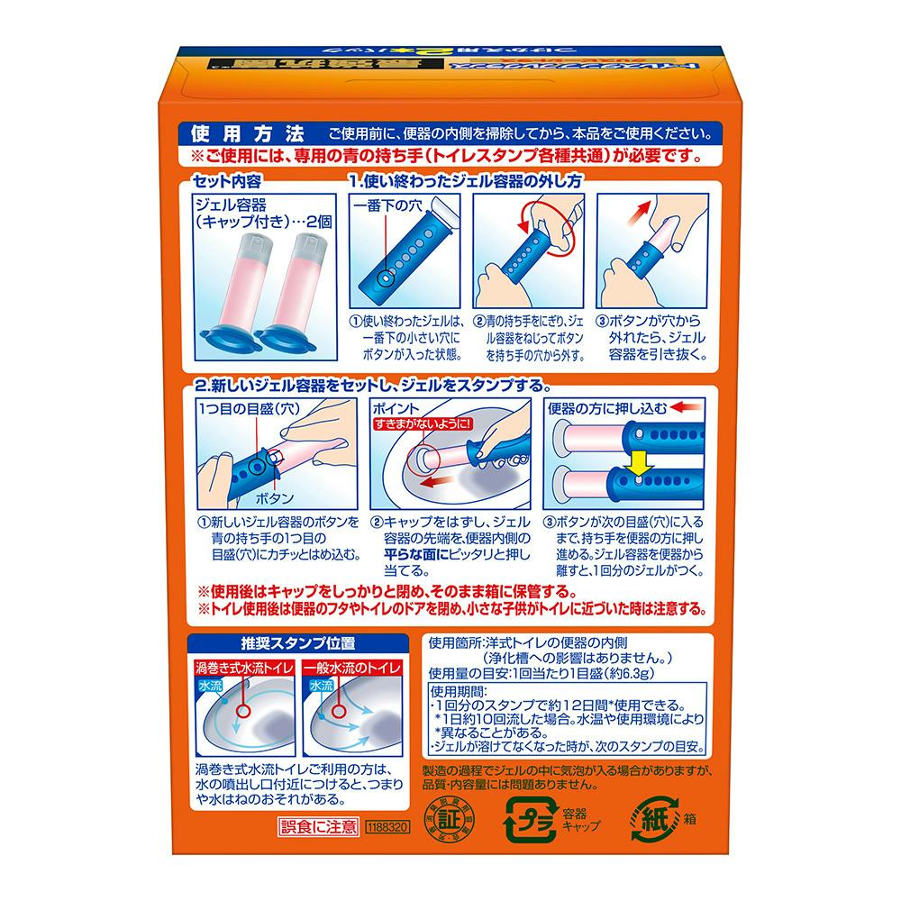●1回分のスタンプで約12日間使用できる。※1日約10回流した場合。水温や使用環境により異なることがある。●ジェルが溶けてなくなった時が、 次のスタンプの目安。