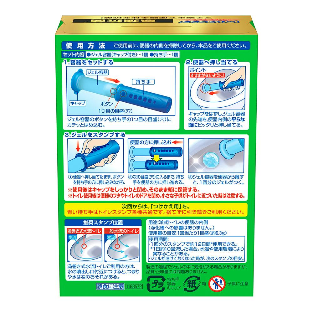 ●1回分のスタンプで約12日間使用できる。※1日約10回流した場合。水温や使用環境により異なることがある。●ジェルが溶けてなくなった時が、 次のスタンプの目安。