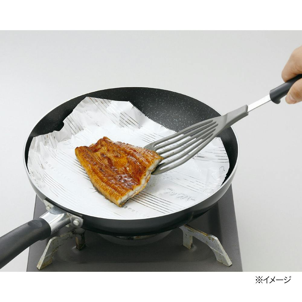 ●フライパンで使うときは外にはみ出させないように敷いてください。オーブントースターで使うときは、熱源などにホイルが直接触れないように敷いてください。炎や熱源に触れるとホイルが溶けることがあります。●電子レンジには使用しないでください。