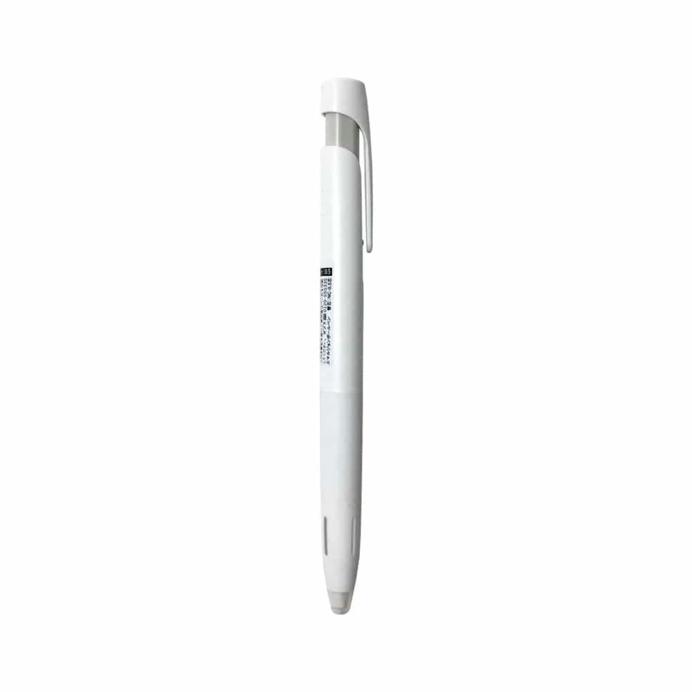 ●本体上/再生ポリカ―ボネート ●本体下(グリップ部)/エラストマー ●本体下(先端部)/再生ポリプロピレン ●ノックキャップ/ポリアセタール ●クリップ/アクリル ●オモリ/真鍮 ●インナー/ポリプロピレン、エラストマー