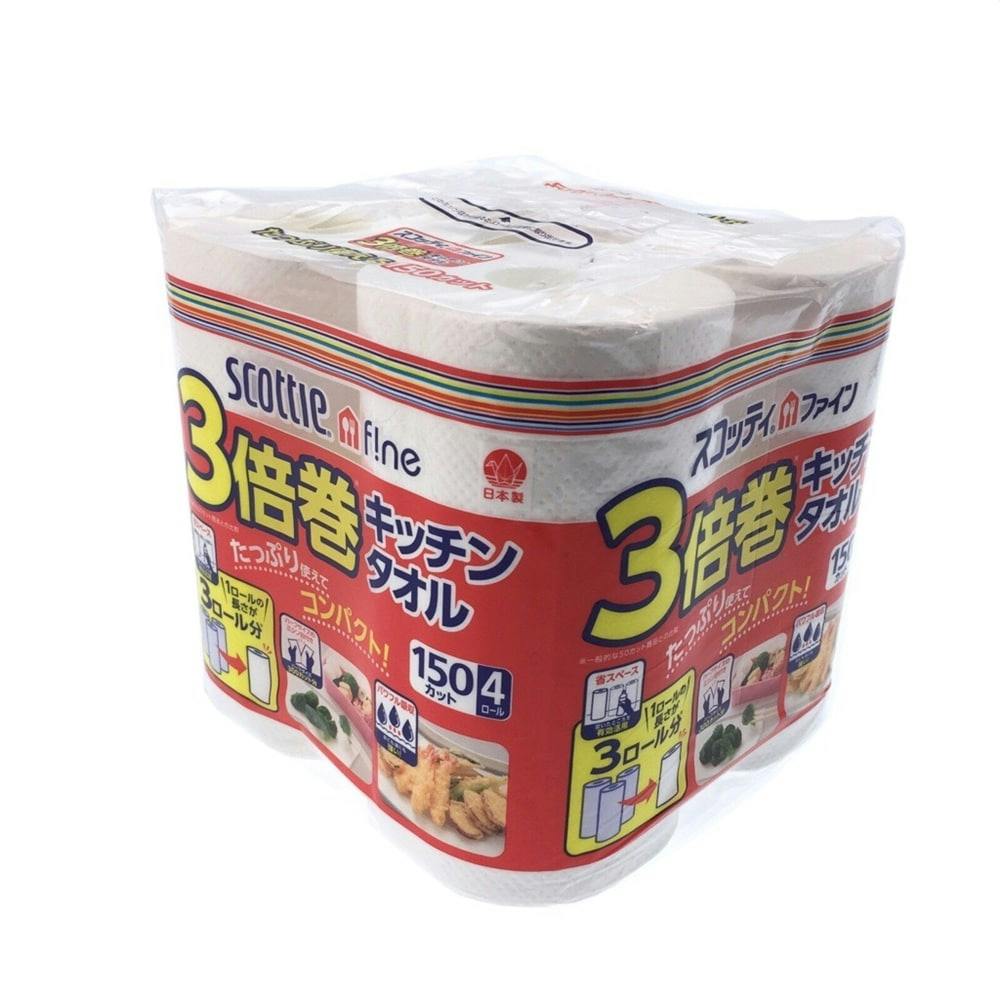 • 日本製紙 クレシア スコッティファイン 3倍巻キッチンタオル 150カット 4ロール