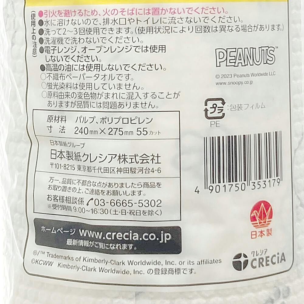 日本製紙 クレシア スコッティファイン 洗って使えるペーパータオル スヌーピー 55カット 1ロール