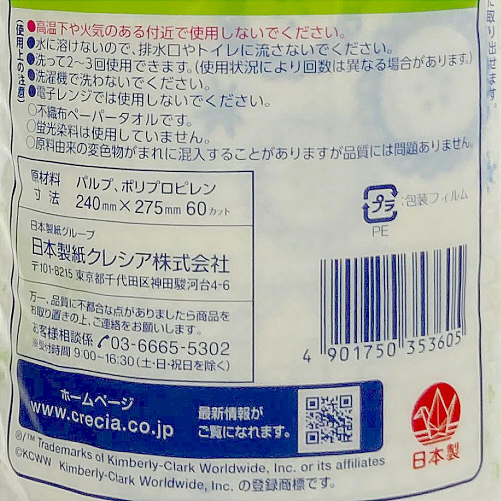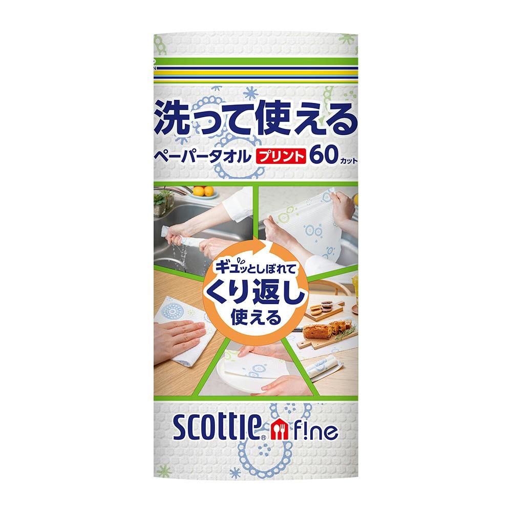日本製紙 クレシア スコッティファイン 洗って使えるペーパータオル プリント 60カット 1ロール