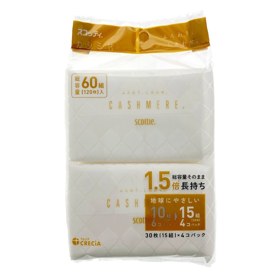 ●ふんわり、しあわせ ●色々なシーンにも馴染むカシミヤ ●総容量そのまま1.5倍長持ち ※スコッティカシミヤ6コパックとの比較