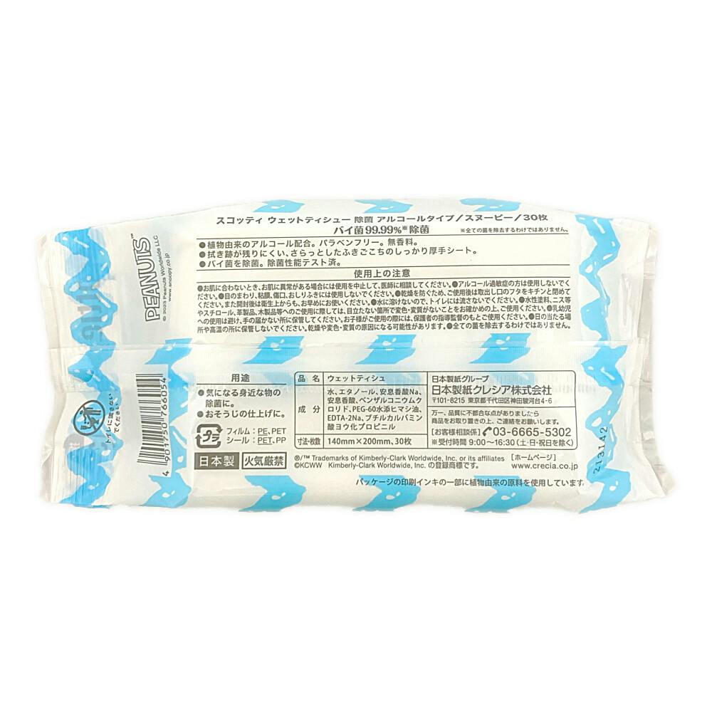 日本製紙 クレシア スコッティ ウェットティシュー 除菌 アルコールタイプ スヌーピー 30枚